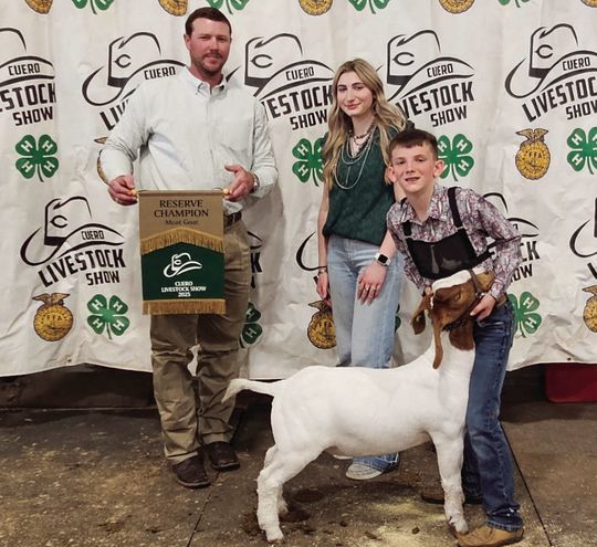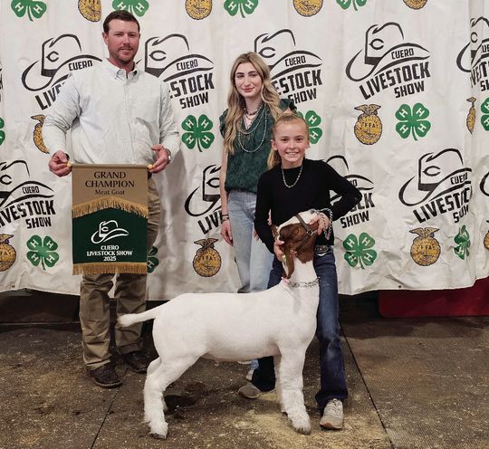 At this year’s Cuero Livestock Show, Briley was even more proud because the young competitors she worked with throughout the year earned champion awards. Landrey Koopmann with the Yorktown 4-H won Champion Meat Goat and Caleb Boehl with the Prairie Street 4-H won Reserve Meat Goat.