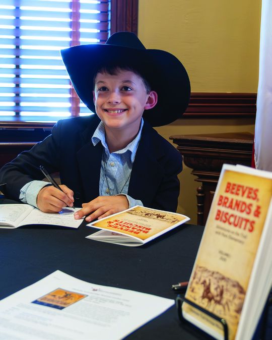 The Chisholm Trail Heritage Museum held a “Student Author Book Signing Event” to celebrate the top Hunt Elementary Student Authors from the first writing contest on April 9. Fourth and fifth graders wrote first-person journal entries as if they were on a cattle drive in the 1800s. This writing project was part of an engaging social studies program that included a field trip to the Chisholm Trail Heritage Museum to learn about the great cattle drives and life in the 19th century. The students selected had the most creative and well-written entries.