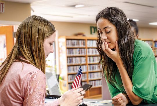 Two young visitors, Shaziana Scott and Shaley Scott, came to use the library’s printer to print an email, a PDF file, and a certificate from their cellphones.