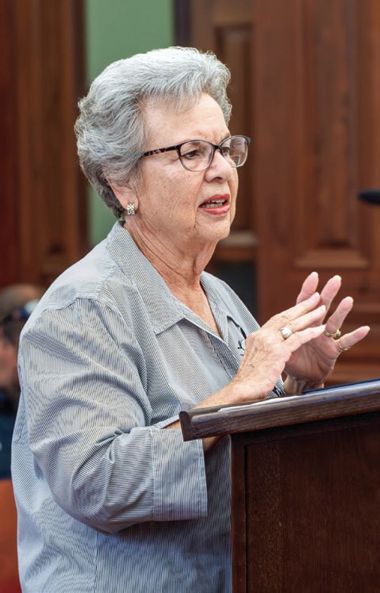Peggy Ledbetter, Chairman of the DeWitt County Historical Commission, explains the details of 2024 annual report.