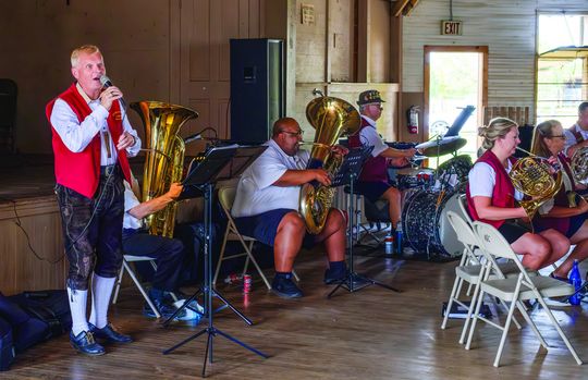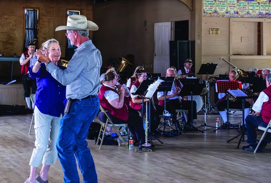 On Sunday, the cheerful and lively music of The New BraunfelsVillageBrass Band filled the Nordheim Shooting Club Dance Hall during the Nordheim May Feast. Despite only rehearsing once a month, the twenty-member band is made up of talented musicians, many of whom are professionals with experience as band directors themselves.