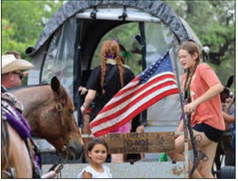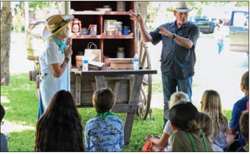 The Rawhide Riders of Cuero help campers onto one of their horse-drawn buggies. (Photo by Virginia S. Gilstrap)