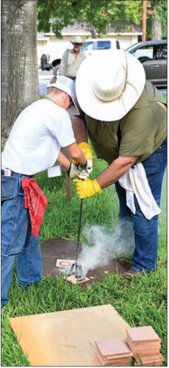 Brian Cromeens and the Adams family lead the branding iron station.