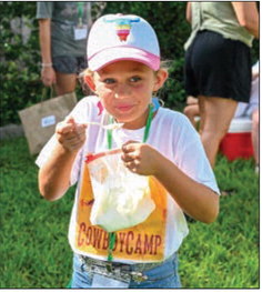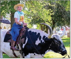 Taking a photo with Tex the longhorn steer has become a yearly tradition at Cowboy Camp.