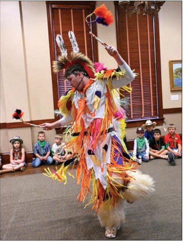 Volunteers from Venture Crew 307 perform traditional Native American dances and songs.
