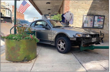 A driver of a grey Mustang had mechanical issues and jumped the curb on Main Street in front of the public restrooms on June 19, according to the Cuero Police Department. A decorative lamppost was damaged in the accident. (Staff Photo)