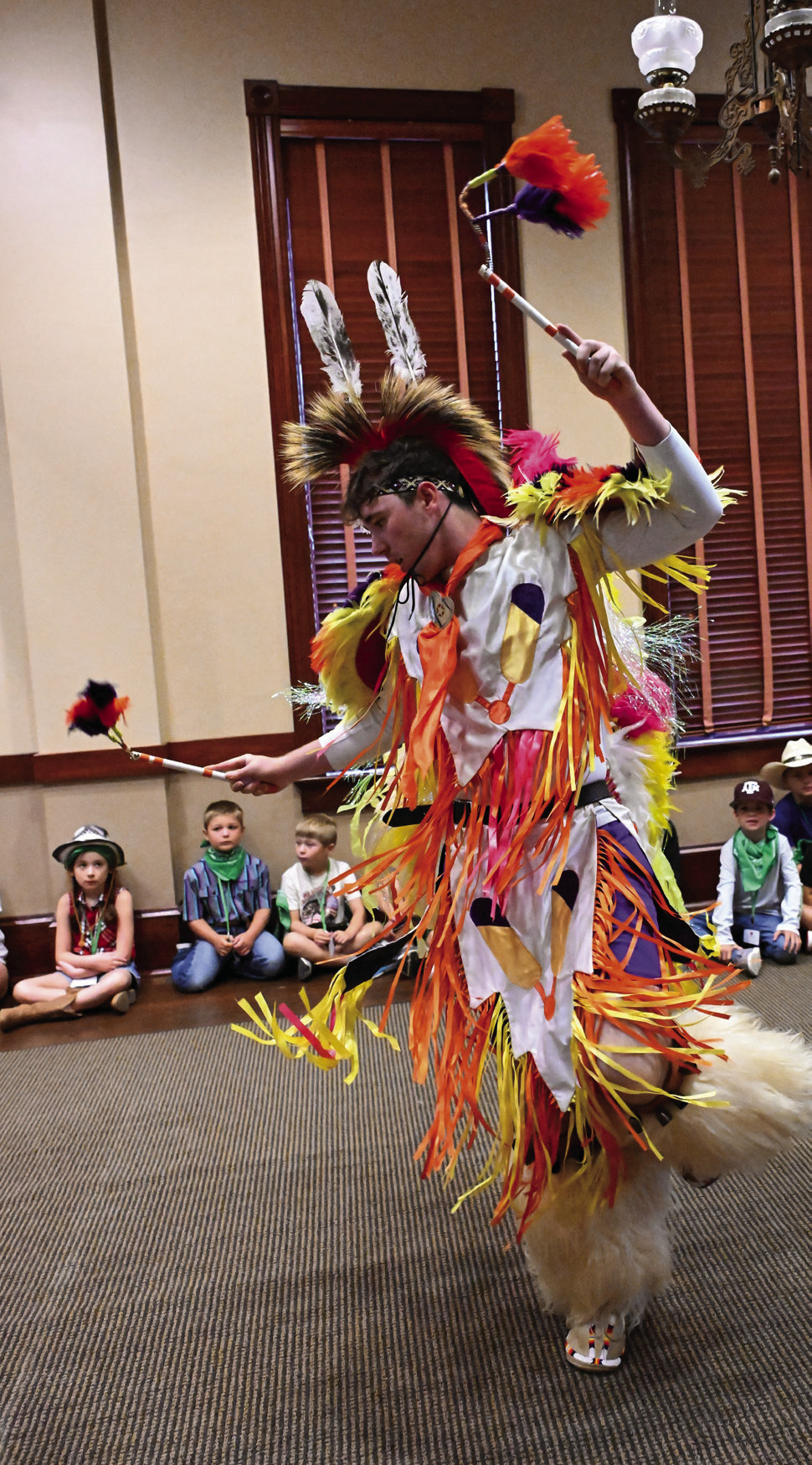 Volunteers from Venture Crew 307 perform traditional Native American dances and songs.
