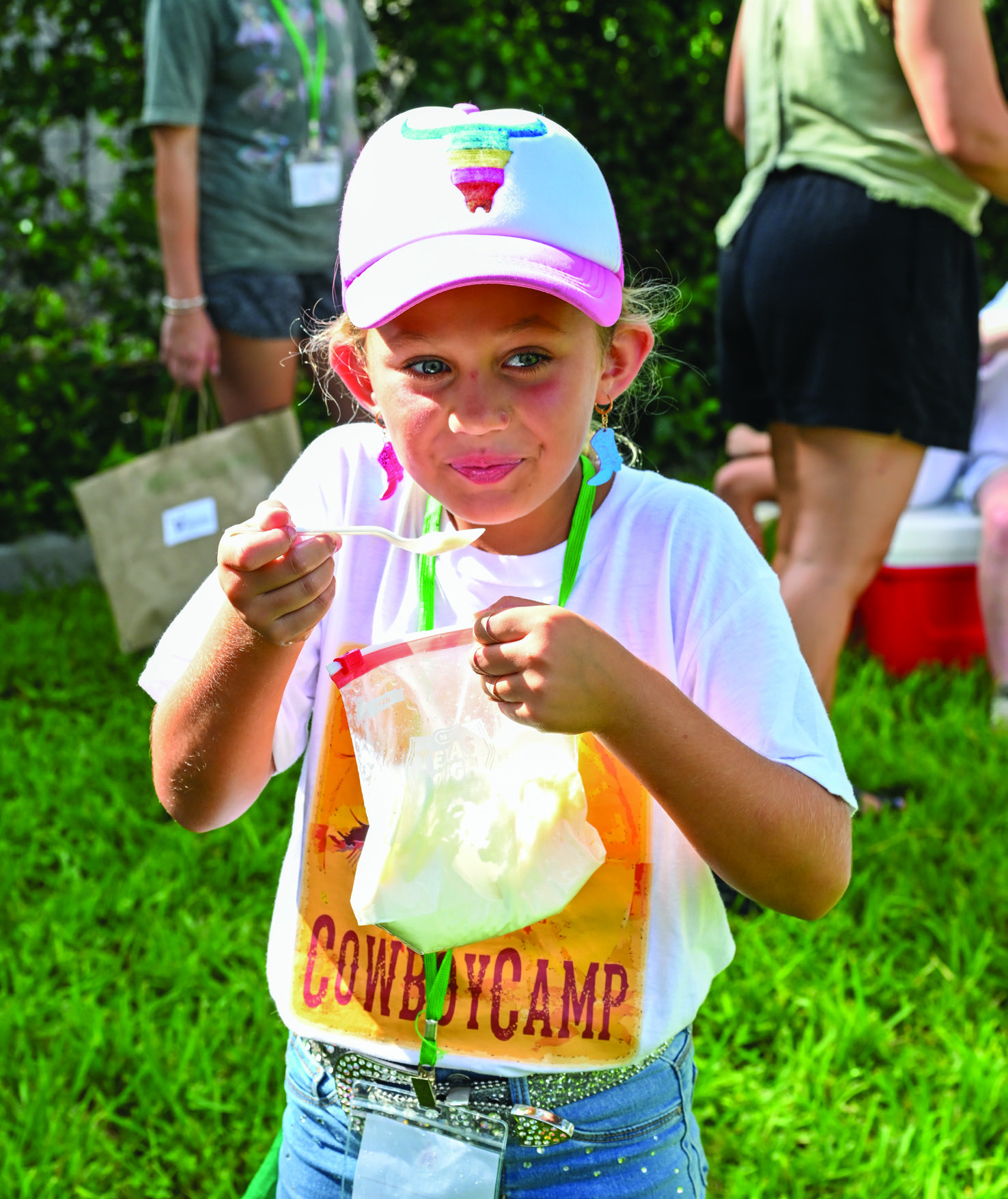 Ada Lemley eats homemade ice cream at the Heritage Farms dairy cow station.
