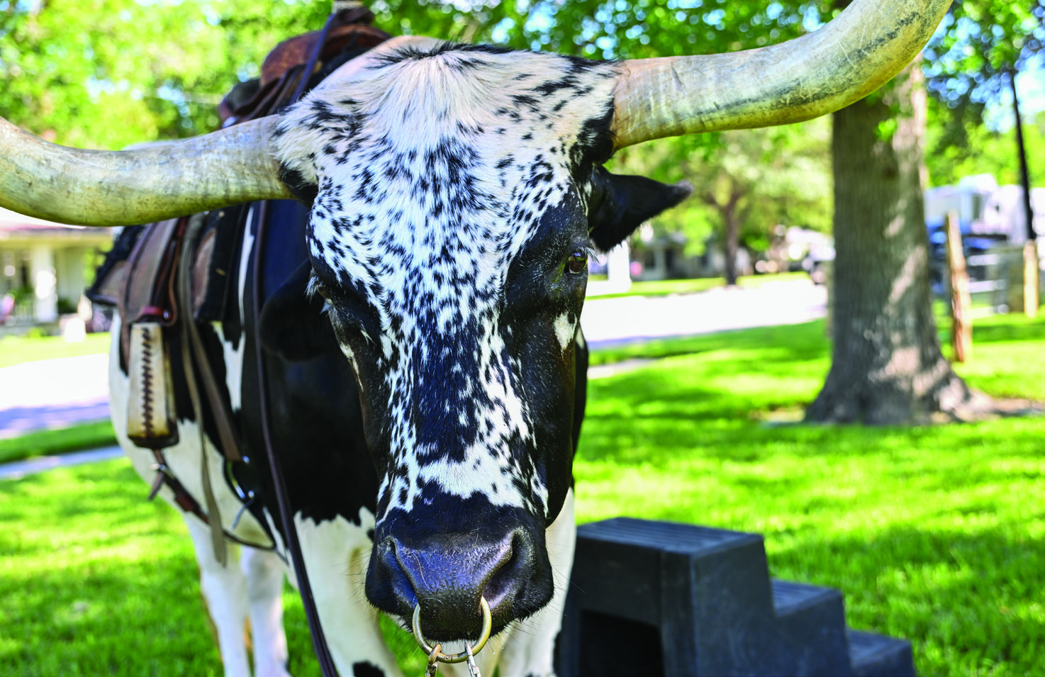 Taking a photo with Tex the longhorn steer has become a yearly tradition at Cowboy Camp.