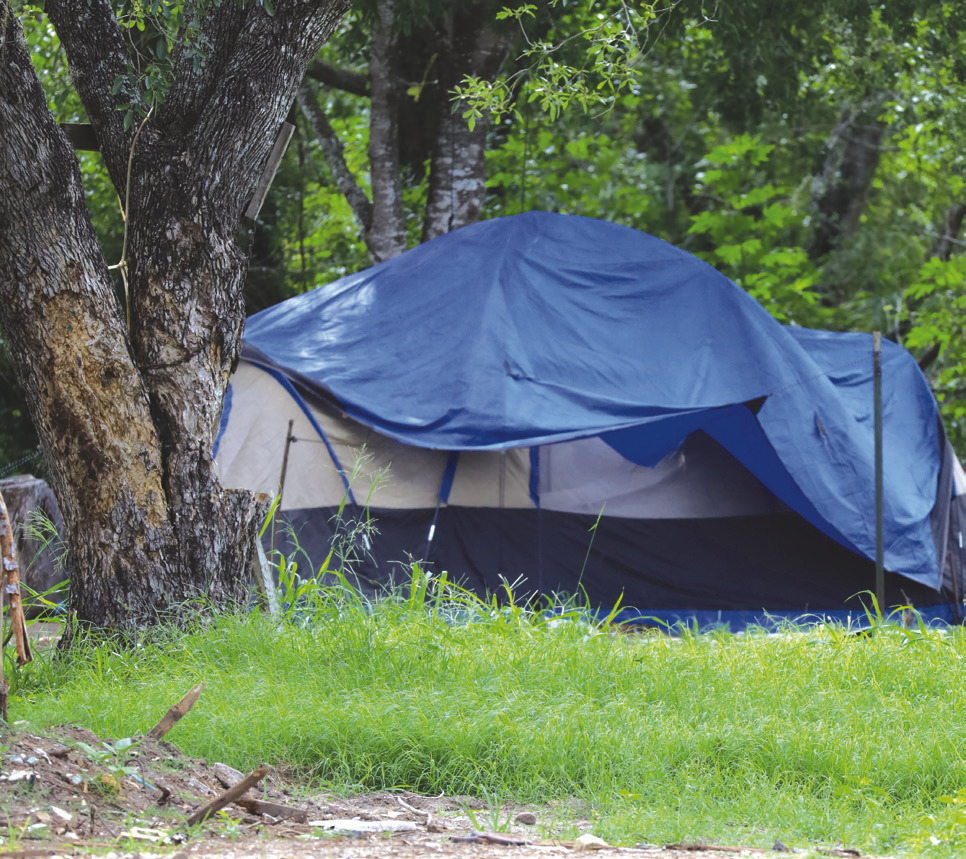 Several people, who have been unhoused by the recent clearing of structures, are camping outdoors. The city says such people need to seek help from social services and family. STAFF PHOTO