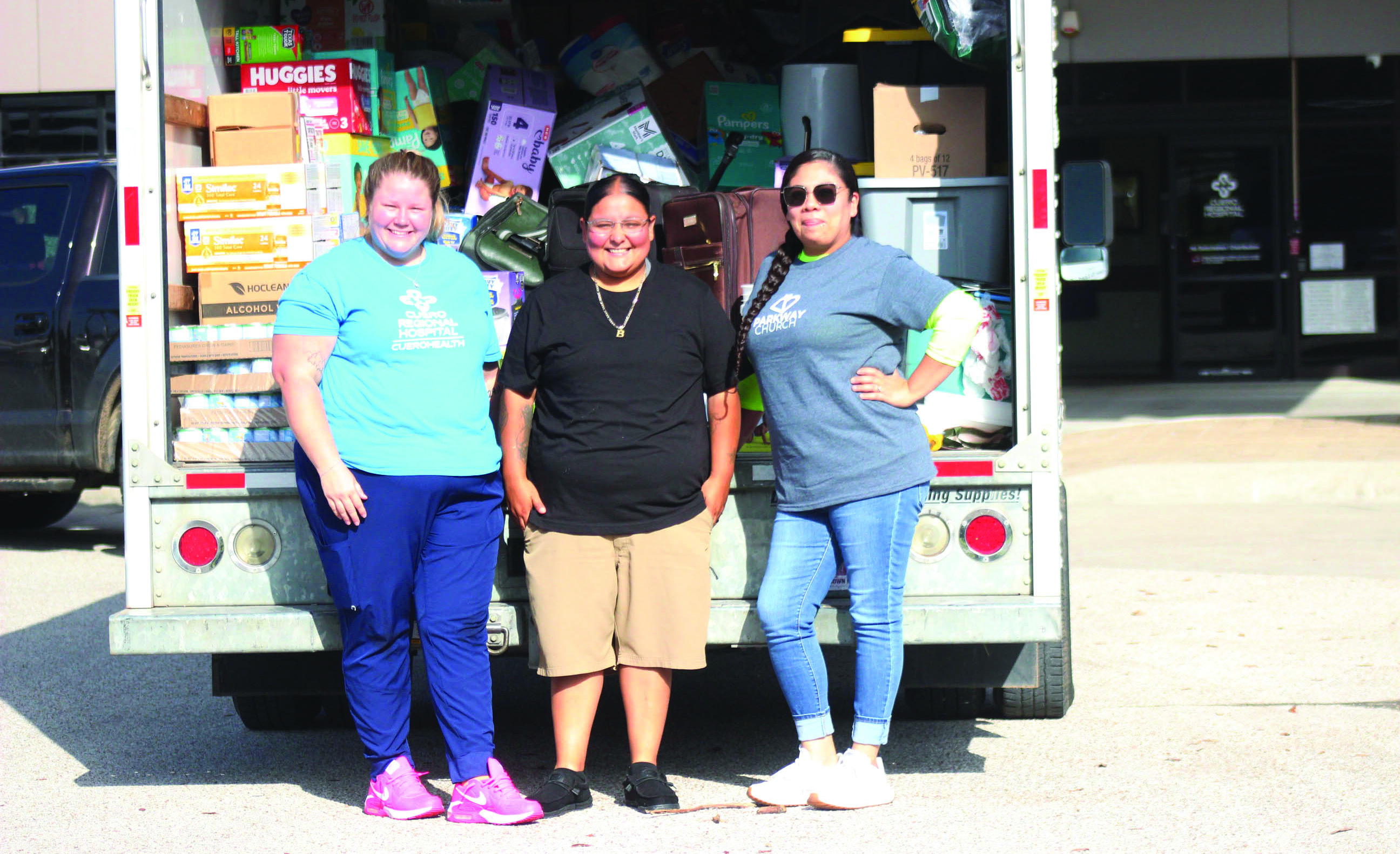 Two truckloads of diapers, formula, canned goods, water and everything else essential were gathered by Jeni Garrett with Parkway Church assisted also by Lifeway Church.