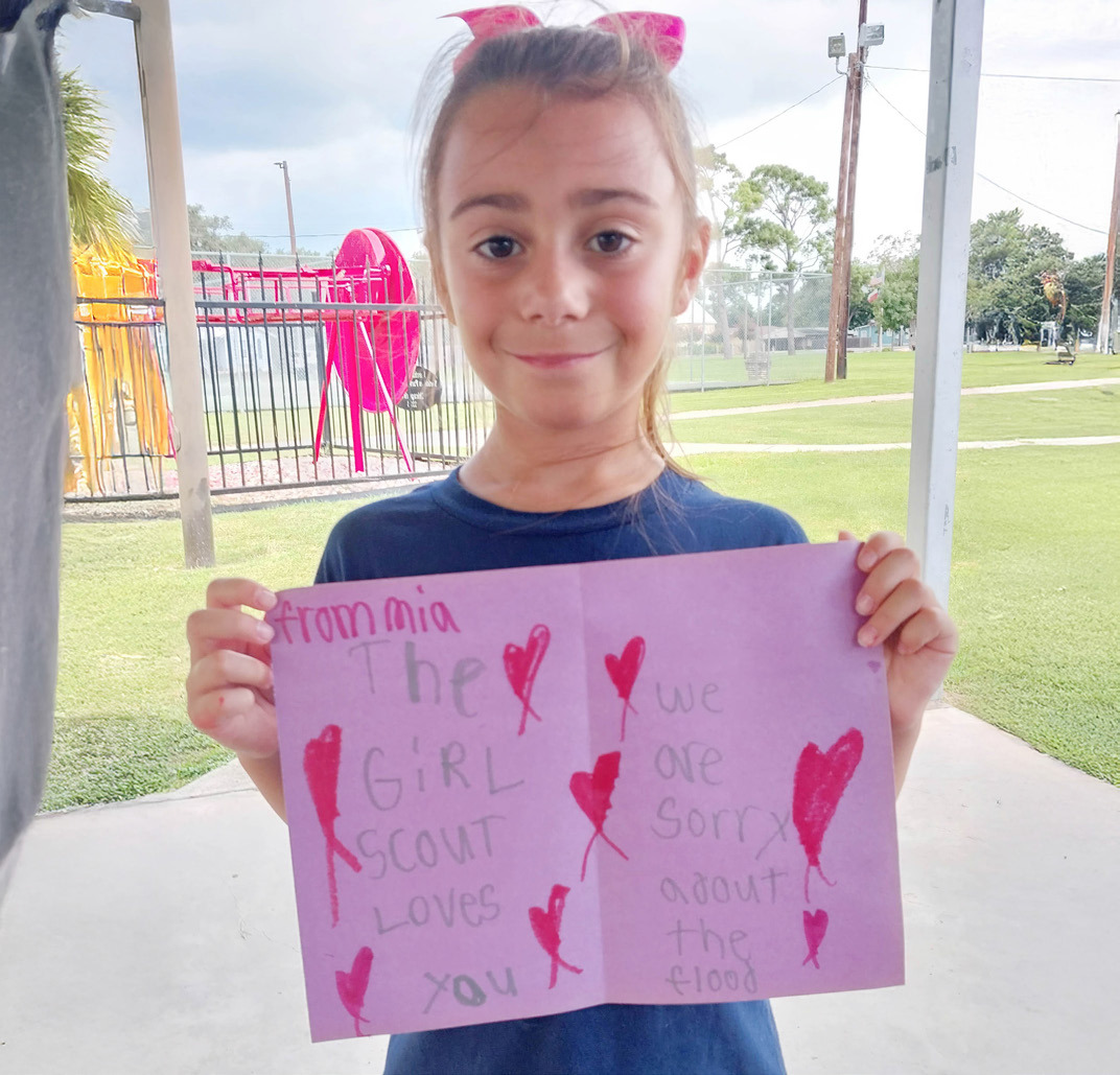 Yorktown's Girl Scout Troop 9405 placed green bows on trees in the city park on Sunday, honoring the victims of Camp Mystic from the recent floods. The girls also made cards to be mailed along with gift cards to Kerrville Pets Alive to join in their efforts to reunite lost pets with their owners.