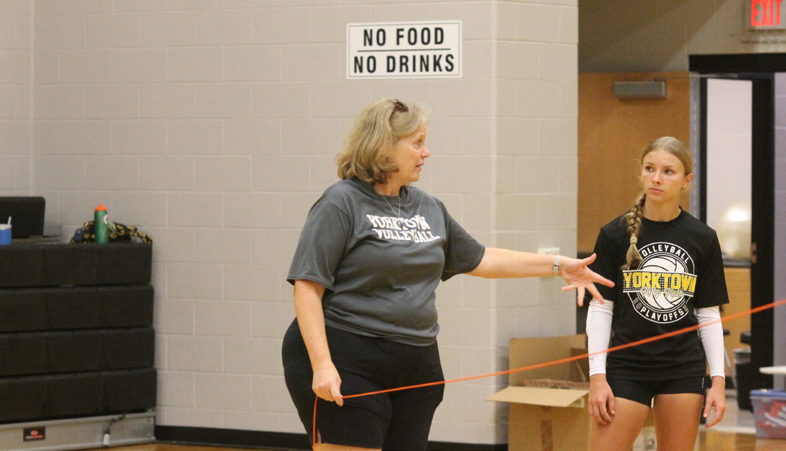 Zenner can be seen coaching while Claire Person is at the net during Saturday's practice. (Photos by Deirdre Alexander)