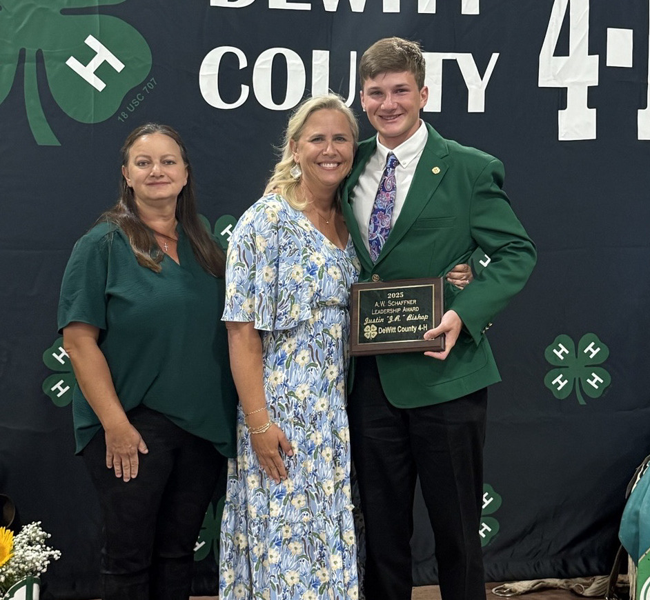 DeWitt County 4-H A.W. Shaffner Leadership Award Winner: J.R. Bishop (in Photo, (LtoR): Debbie Roeder, Tamara Kainer, J.R. Bishop)