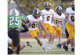 The Bulldogs’ air attack produced two long touchdowns—a 70-yard and a 42-yard passing touchdown, respectively. However, the first half ultimately belonged to Yorktown. Metting closed the opening quarter with a nineyard dash into the endzone, regaining the lead, 12-8.