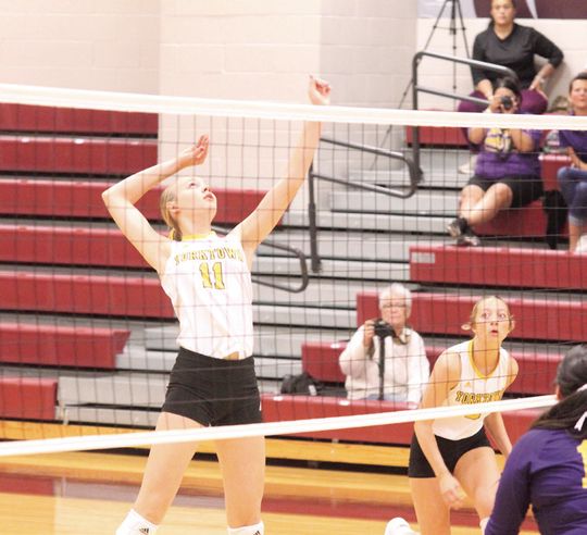 The face off with Tidehaven was thrilling but unfortunately the close battle ended in a loss for Yorktown. This was a familiar matchup; the Kitty Kats played the Bulldogs in pool and bracket play of the South Texas Showdown the week prior. The Kats showed improvement from the previous meeting, forcing the Bulldogs to a five set match, 25-17, 17-25, 26-24, 20-25, 15-17. Yorktown finished 2-1 in pool play at the Kenedy Tournament, with two victories over Nordheim and Kenedy and a loss to Karnes City. The Kitty Kats faced Runge at the start of bracket play. Yorktown’s good serving propelled them back in the set after being down by three. With Runge trailing, 9-4, and senior Nina Villarreal serving back to back aces, the Yellowjackets called their first timeout. They signaled their second timeout when Braleigh Dodds was serving and the Kitty Kats were utilizing Sydnie Krueger from the middle. The set was put away by a kill from the right side by Claire Person, 25-17.