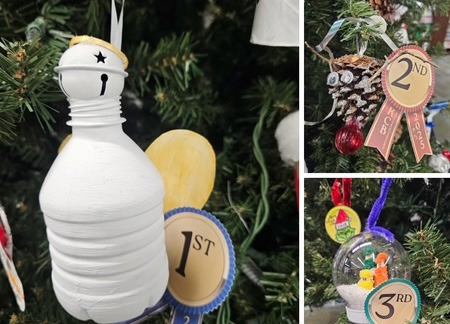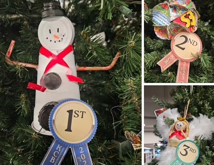 The contest was for K-1st grades and 2nd-4th grades. There were 105 entries judged for their use of and number of materials in the upcycled ornament. The students who placed received gift cards to a local restaurant.