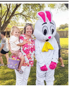 Yorktown’s first Mardi Gras festival 3/ 5/ 25 Bexlee Blaschke (L-R) and Carla Sullivan show their basket of eggs to the Easter Bunny at the Yorktown Community-Wide Easter Egg Hunt on April 12.