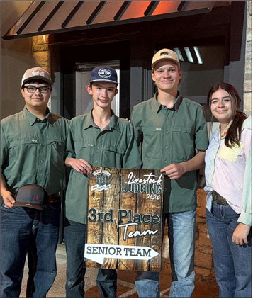 Yorktown FFA students Ben, Brock, Andrew, and Addison placed 3rd at the Nueces County Livestock Judging Competition on Jan 16th. Addison earned 2nd place overall. Courtesy Photo