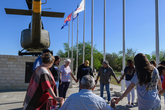 A group of military family members held a prayer vigil at the Vietnam Veterans Memorial for the U.S. Military March 21. Pastor Carolyn Morehead of Faith Christian Fellowship, whose grandson, Russell Morehead, is serving in the military in the Middle East on an aircraft carrier, led the prayer. Photo by Aubrey Morehead