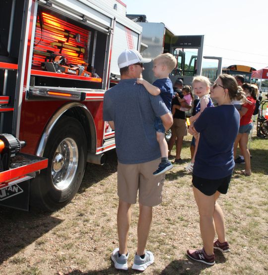 About 30 vehicles from almost 20 organizations parked in the VFW field off Highway 183 with the highly popular Lifeflight helicopter parked next to the road. A four-wheeler pulled a train of kid-sized cars around the various vehicles, so children could get an overall idea of the various machines they could visit.