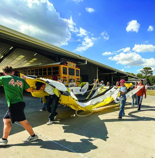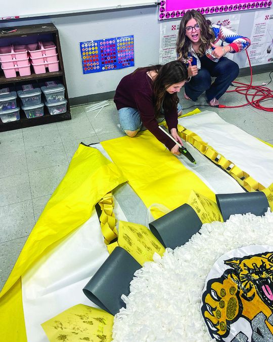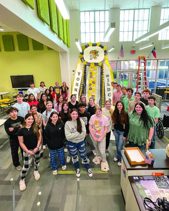 Emmalee Alatorre and her floral design class launched a project to make the largest-ever Giant Mum for the 2024 Homecoming game between Yorktown Wildcats vs Pettus Eagles. The Giant Mum was made of coffee filters, glitter from the Dollar Store, printed paper laminated, hot glue, staples, and tape. It was initially 35 ft. long and had to be downsized to 20 ft. to fit into the building.