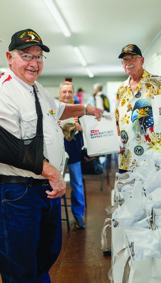 5 D Steakhouse and other restaurants offered free dinners to veterans. A special thank you was extended to the veterans and their spouses, including Hagel, Larry Gohmert, Joe Adams, and Sgt. Kenneth Buenger, (USA) Ret./Treasurer of De-Witt VVA #1029 for their rifle and quilt auction. Velinda Geffert and Loretto Martin were appreciated for their quilt donations, as well as HEB for providing “Thank You” bags.