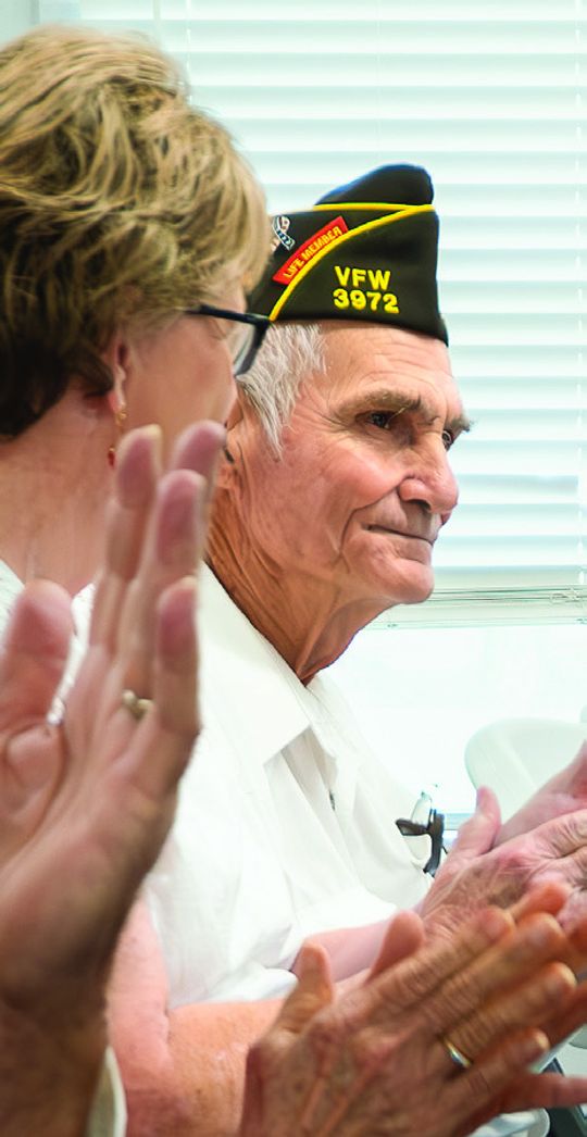 Military branches were called out to stand during the Musical Veterans Recognition arranged by Ray Semper. Gold and Blue Star parents and grandparents were also honored.