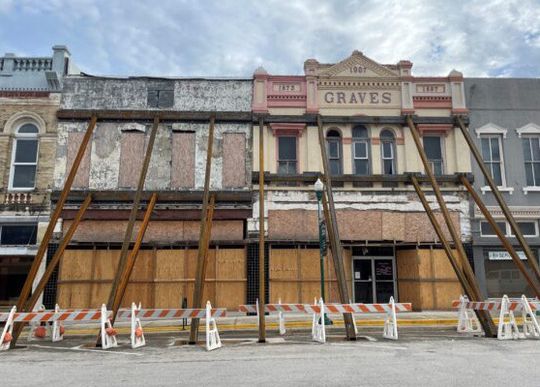 The shoring steel on the Graves Building in Downtown Cuero may soon come down if a general contractor signs on, according to Architexas Senior Associate Nicholas Melde.